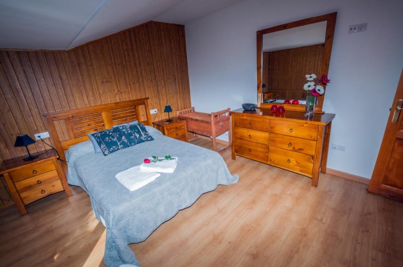 * EL DORMITORIO: Abuhardillado está equipado con cama de matrimonio, armario empotrado, dos mesillas y sinfonier. Para su seguridad hemos instalado una caja de seguridad en el armario de la habitación. A los piés de la cama hemos colocado una chimenea con el fin de hacer una estancia más intima y romántica. Esperamos que la disfruteís.